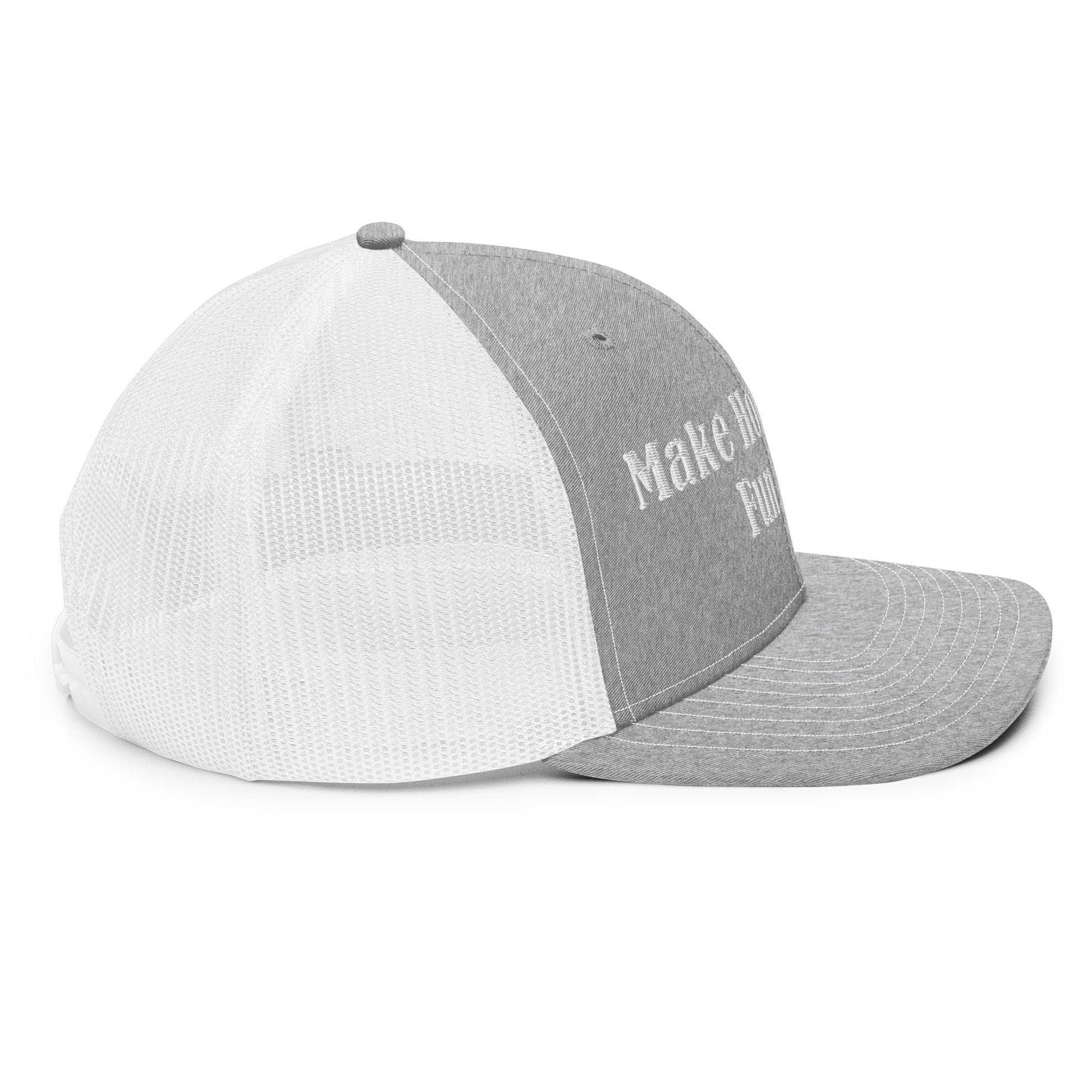 Complete your outfit with an embroidered trucker cap—combine it with a sports tee, slacks, and comfy shoes. It has a classic structured fit, adjustable plastic snapback, and a curved visor that matches its underbill.